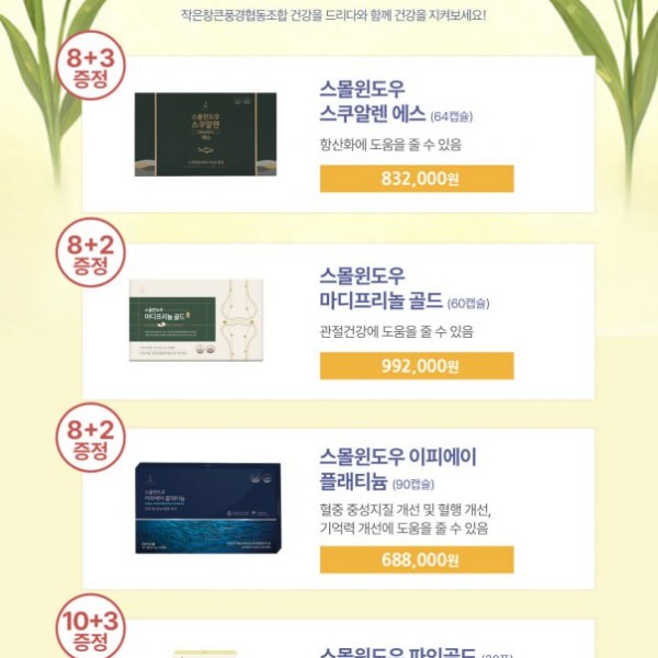 건강을 드리다 라는 슬로건을 가지고 건강기능식품, 건강식품, 생활용품, 주방용품 등의 제품군을 취급하고 있으며 모두 정직한 생산을 통해 만들어진 안전한 제품들만 제공하고 있습니다.